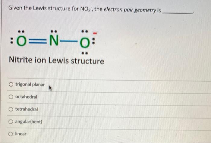 Solved Given the Lewis structure for NO2, the electron pair | Chegg.com