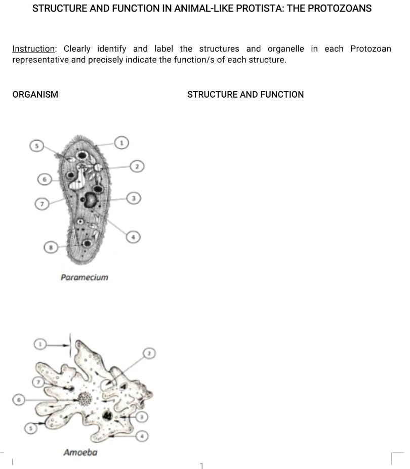 DoL: Protist Cell Structures and Functions Diagram | Quizlet