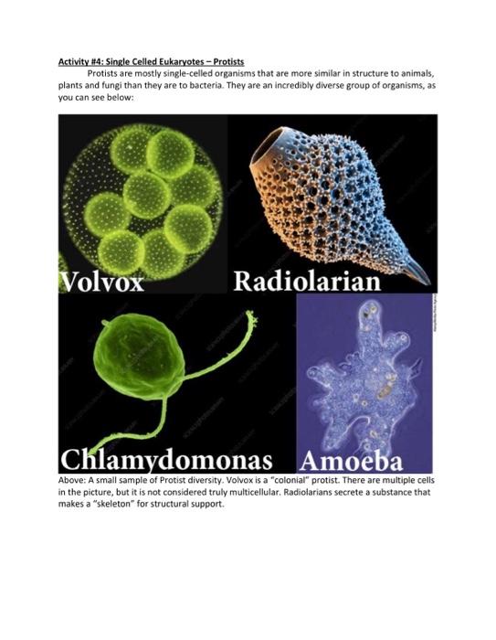Solved Activity \#4: Single Celled Eukaryotes - Protists | Chegg.com