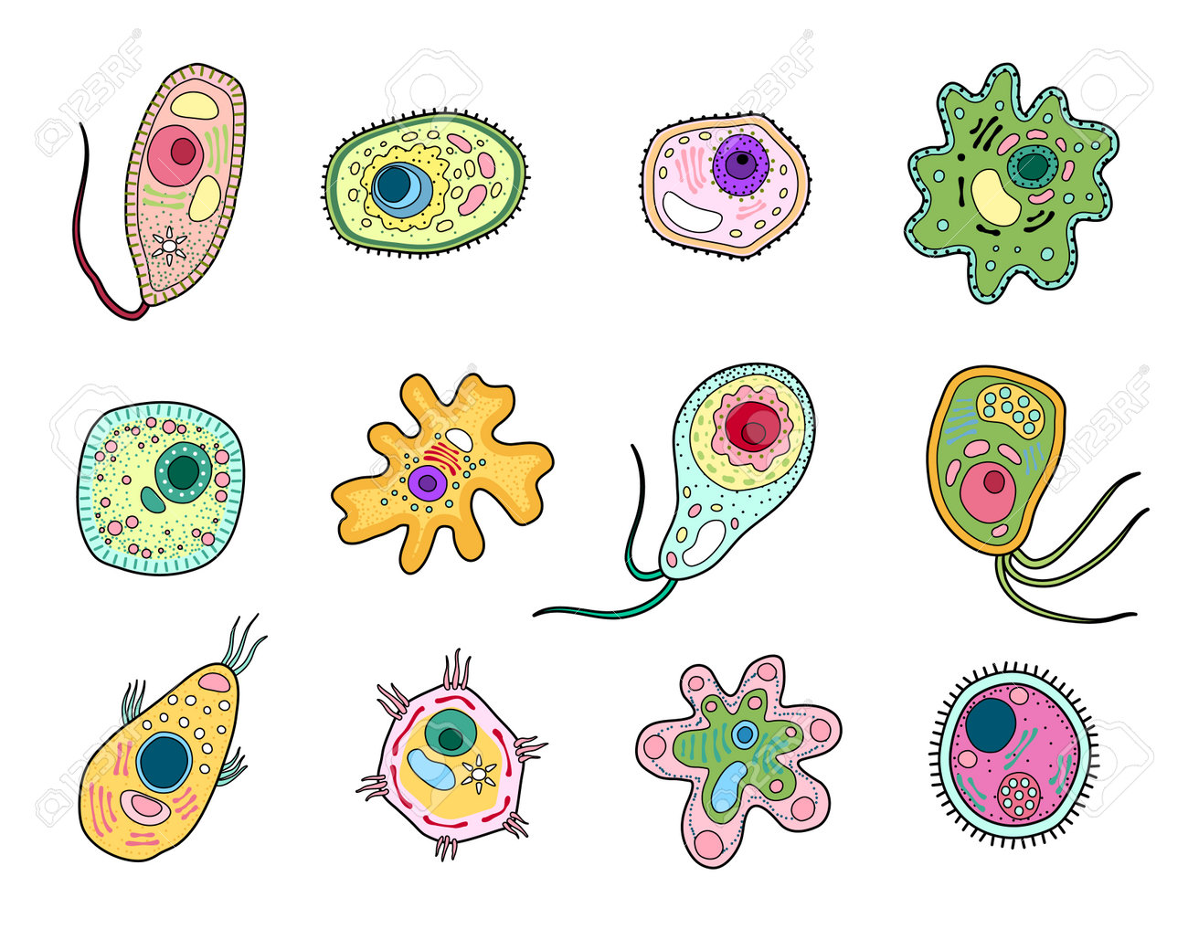 Protista, Protozoa Or Amoeba Microorganism, Ameba Cells And Unicellular Organism, Vector. Bacteria In Lab Microscope, Amoeba Protista Or Protozoan Cells Structure, Protist Biology, Microbiology Клипарты, SVG, векторы, и Набор Иллюстраций Без Оплаты