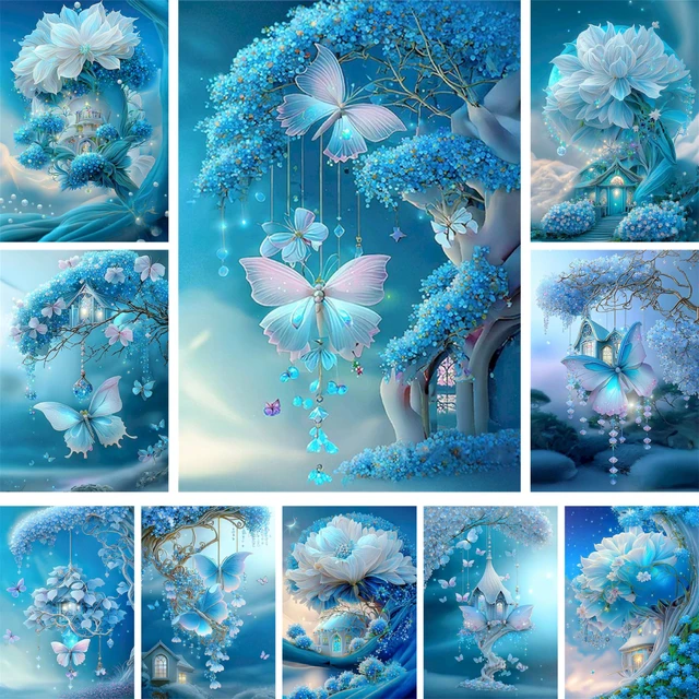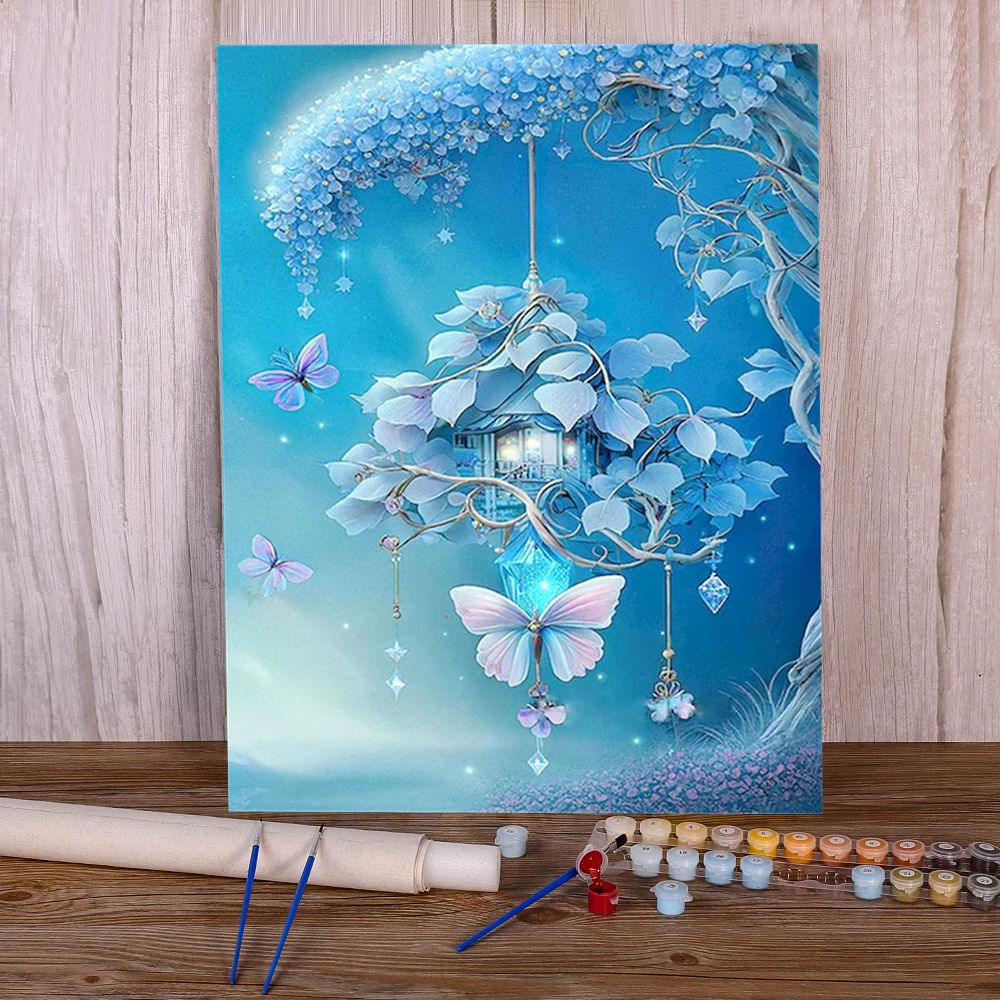 Set lukisan pemandangan kupu-kupu fantasi lukisan dengan angka cat ...