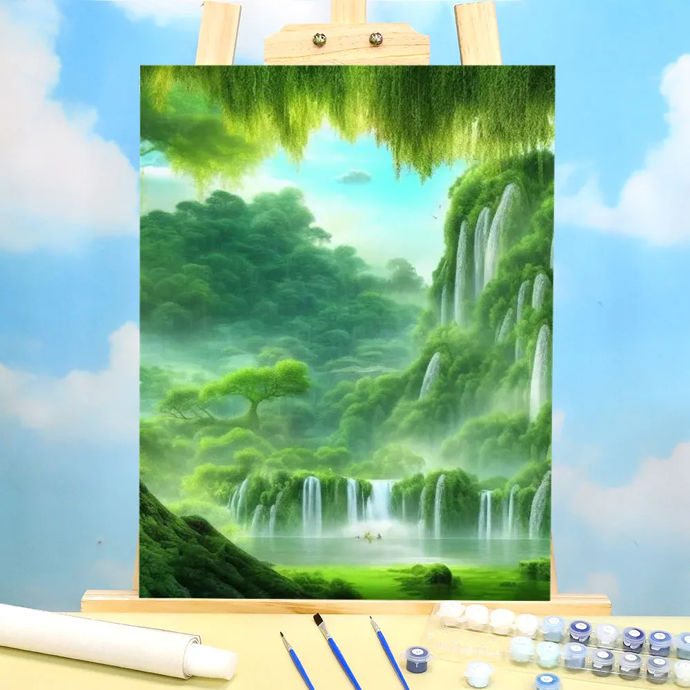 Lukisan air terjun lanskap dengan nomor seni personalisasi seni ...