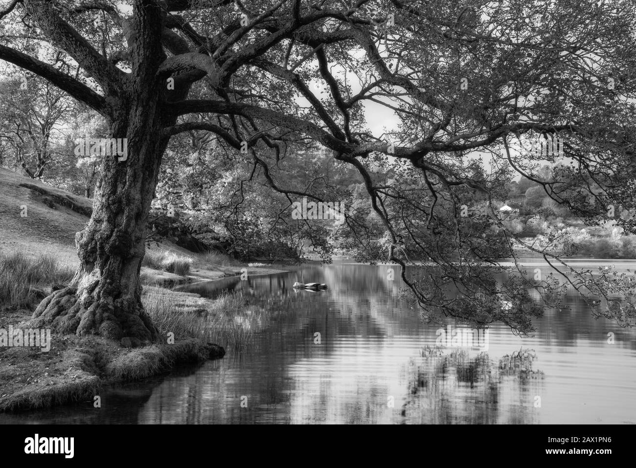 Superbe Infra-rouge Noir Et Blanc Paysage D'été Du Lac Et Du Bois Dans La Campagne Anglaise Image stock - Image du saison, rouge: 157724349