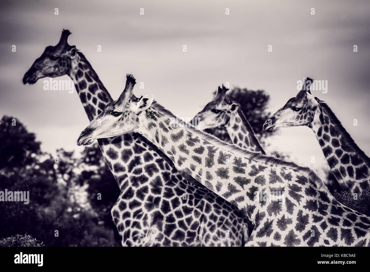 Safari, portrait d'une belle famille de girafes, photo en noir et blanc d'un superbe gros animaux, la photographie d'espèces sauvages, la nature exotique de l'Afrique du Sud Photo Stock - Alamy