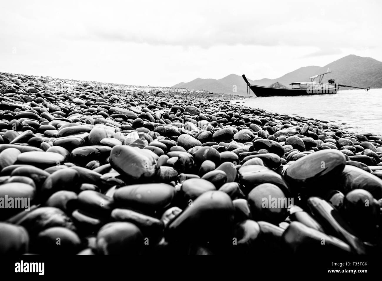 Couleur Noir et blanc, style magnifique paysage nature inhabituelle de rock et sa longue queue en bateau dans la mer à Ko Hin Ngam island Photo Stock - Alamy