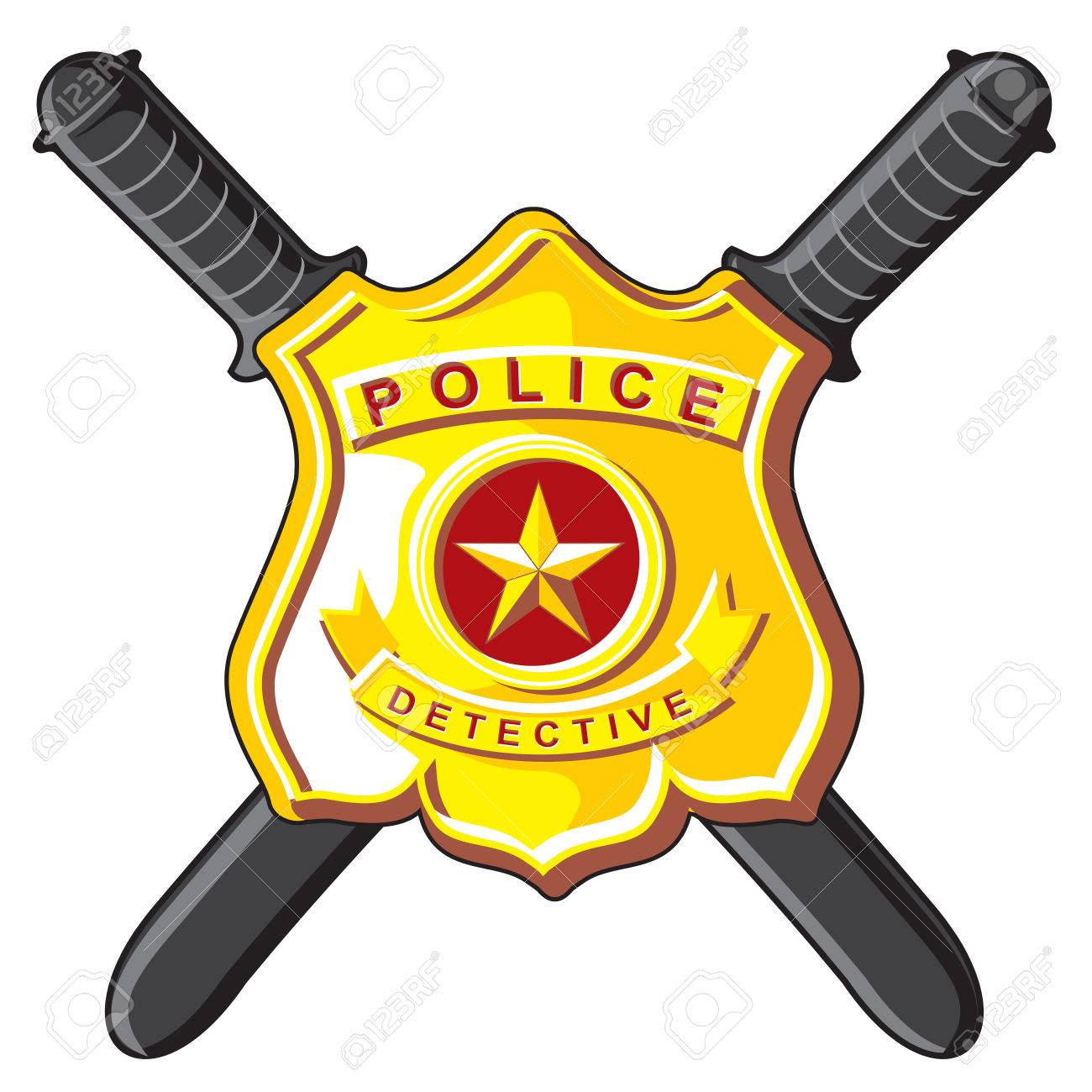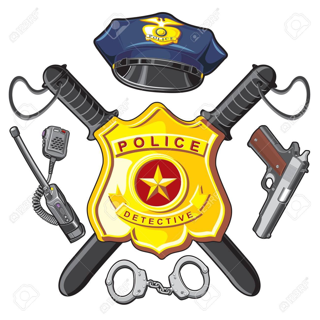 Police Symboles- Badge En Métal, Des Bâtons Croisés, Des Armes À ...