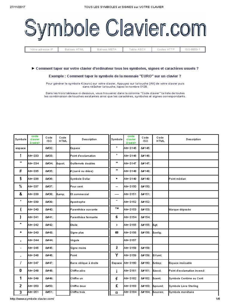 Connaitre Tous les symboles pour le Clavier PC, etc ...