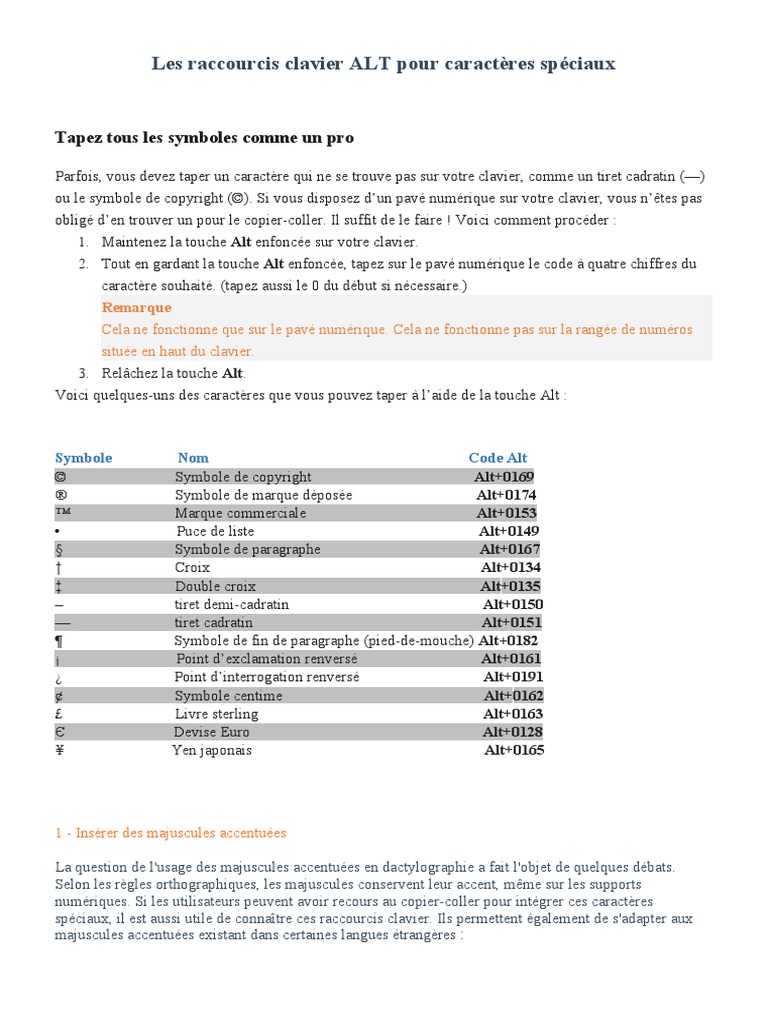 70 raccourcis clavier ALT pour insérer un caractère spécial