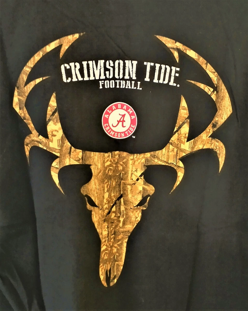Alabama Crimson Tide Football Black Cotton Camo + Deer SS T Shirt Size L EUC | eBay