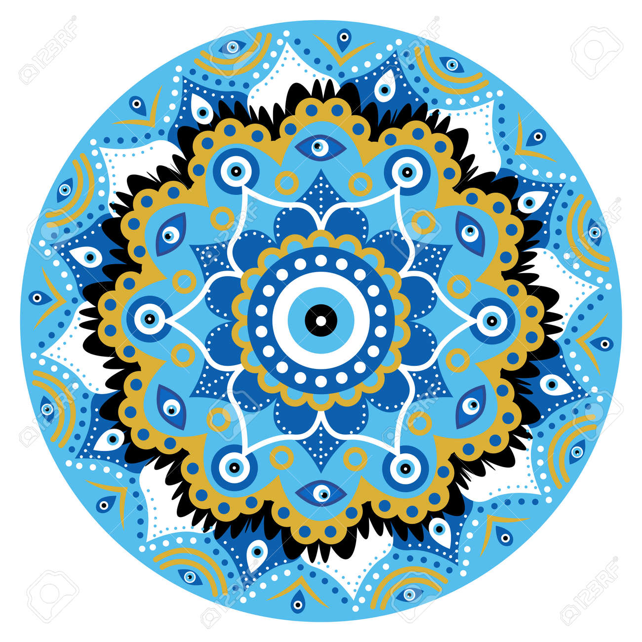 Mandala Grec Mauvais Œil, Symbole De Protection Bleu Turc ...