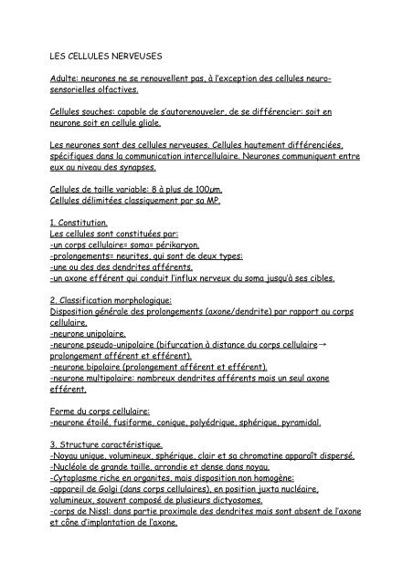 Cours ifsi - Cycles de la vie et grandes fonctions - Le tissu nerveux | Infirmiers.com