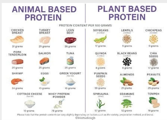Tableau des protéines végétales Liste des protéines végétales Liste d'épicerie des protéines végétales A4 Téléchargement instantané - Etsy France