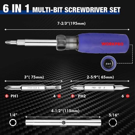 WORKPRO Jeu de Tournevis Multi-Embouts en S2, Tournevis 6 en 1 et ...