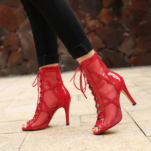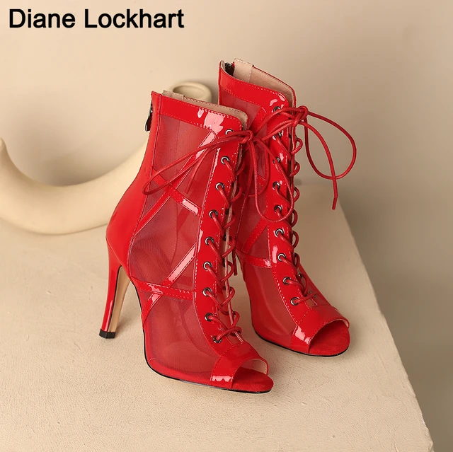 Femme À Lacets Chaussures À Talons Hauts Rouge sexy À Bout Ouvert ...