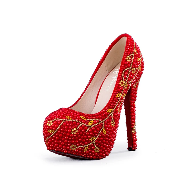 Chaussures de mariage en pierre mélangées rouge et or avec sac à main assorti fait à la main de haute qualité 4 pouces à talons hauts femmes fête bal ...