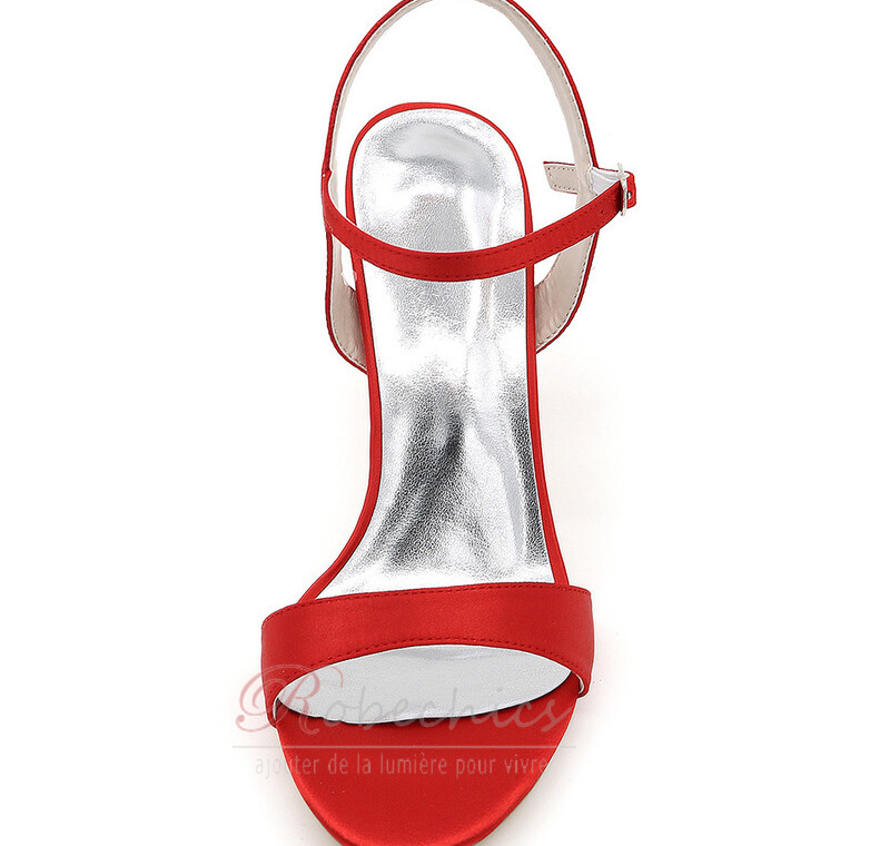 Sandales À Talons Rouges Satinées Lacées À Bout Rond Et Détail ...