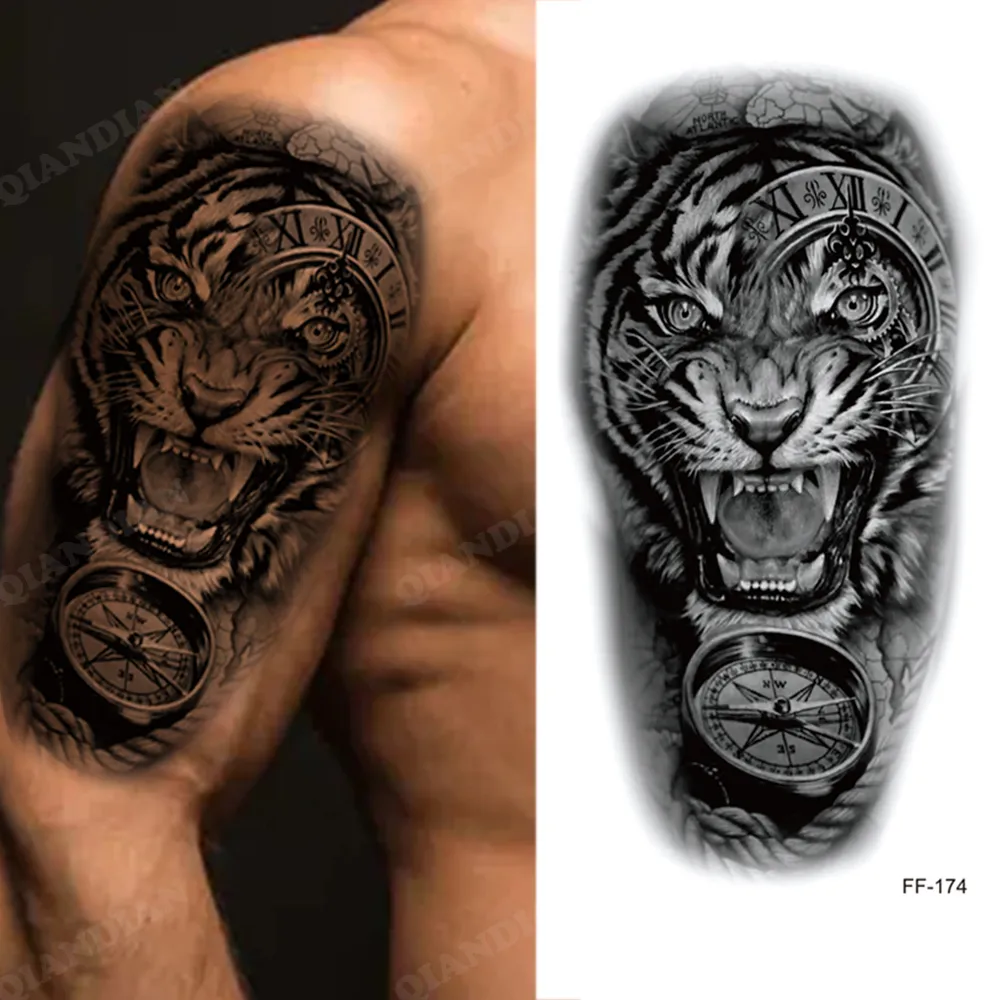 New Waterproof Temporary Tattoo Sticker Lion King Tiger Wolf Forest Mechanical Wild Boat Men Body Art Arm Fake Tatoo Women