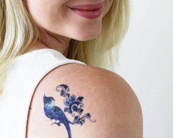 Tatouage temporaire oiseau bleu de Delft Tatouage temporaire bleu ...