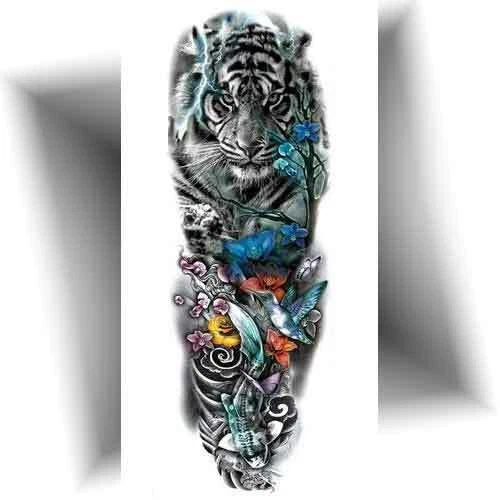 7 feuilles, Tatouages temporaires 3D Tigre, fleurs bleues 14.8x21cm pour femmes hommes adultes, faux autocollants de tatouage étanche Body Art Temp Tattoo Paper Festival Maquillage Party Tattoo : Amazon.fr: Beauté et Parfum