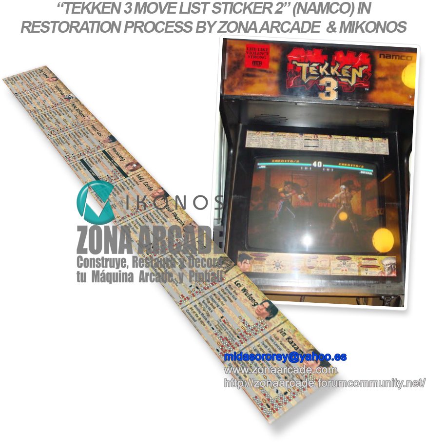 TEKKEN 3 MOVE LIST STICKER 2 FOR BEZEL” (NAMCO) eng. ver. arcade artwork for to restore in Zona Arcade