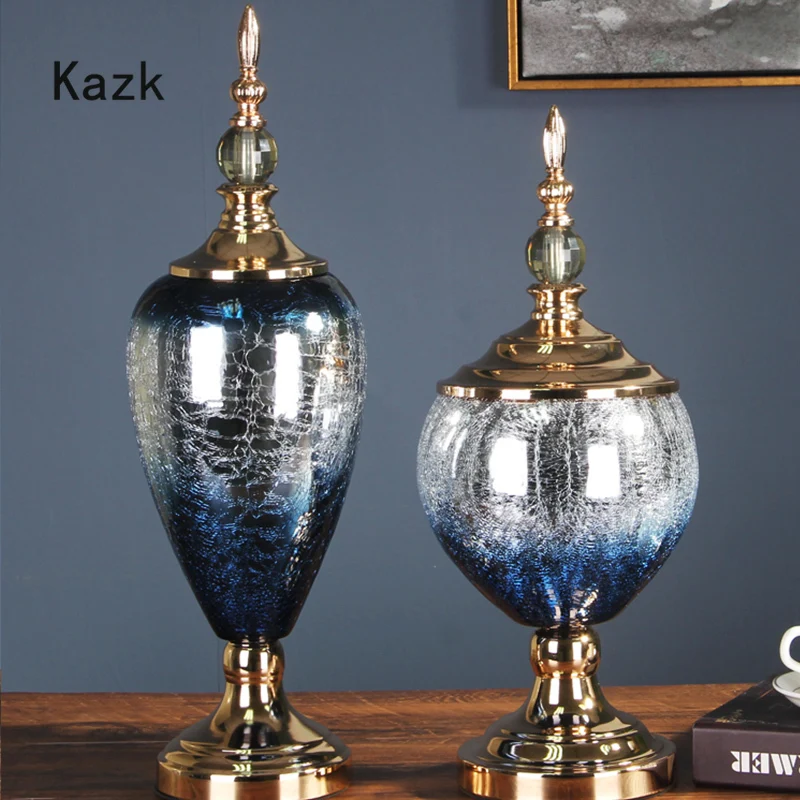 Vase en verre cristal Style européen, léger, moderne, luxe, Texture craquelée, ikana, pot de rangement décoratif, artisanat, décoration de salon - AliExpress