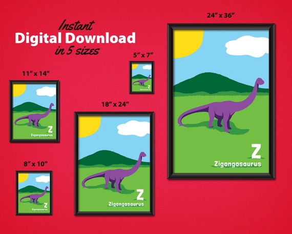 Téléchargement affiche Alphabet dinosaure Zigongosaurus DIGITAL Kids & Nursery Room Decor Printable Dino Wall Art Jurassique ABC lettre Z - Etsy France