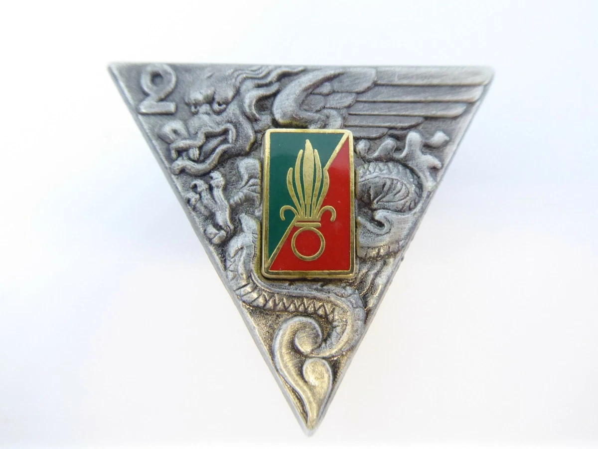 INSIGNE MILITAIRE 2 ème REP PARACHUTISTE LEGION ETRANGERE PARA FABRICATION DRAGO PARIS G1948 VERT FONCE