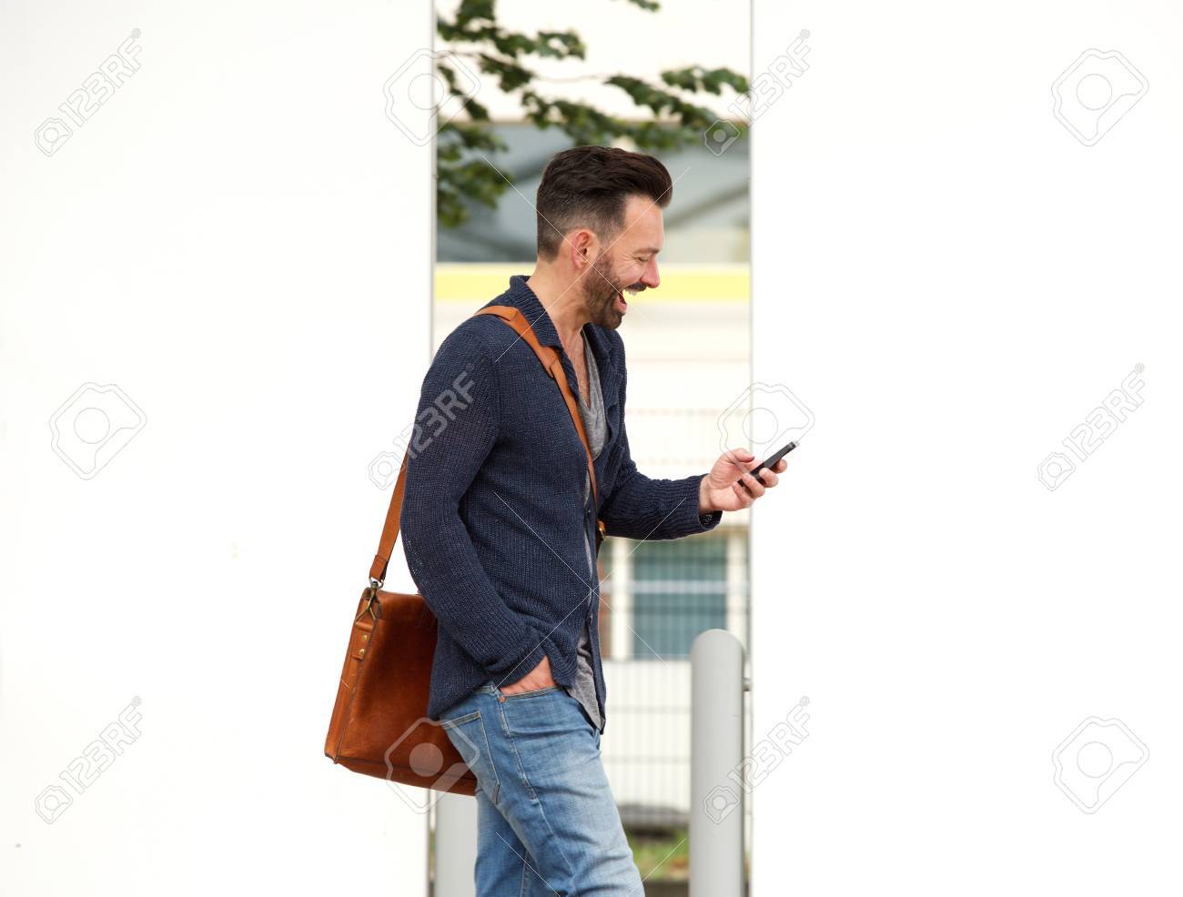 Portrait Latéral D'un Homme Adulte Heureux Qui Marche Sur La Rue ...