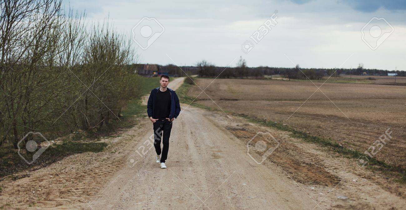 Tristesse Jeune Homme Qui Marche Sur La Route Rurale. L'homme ...