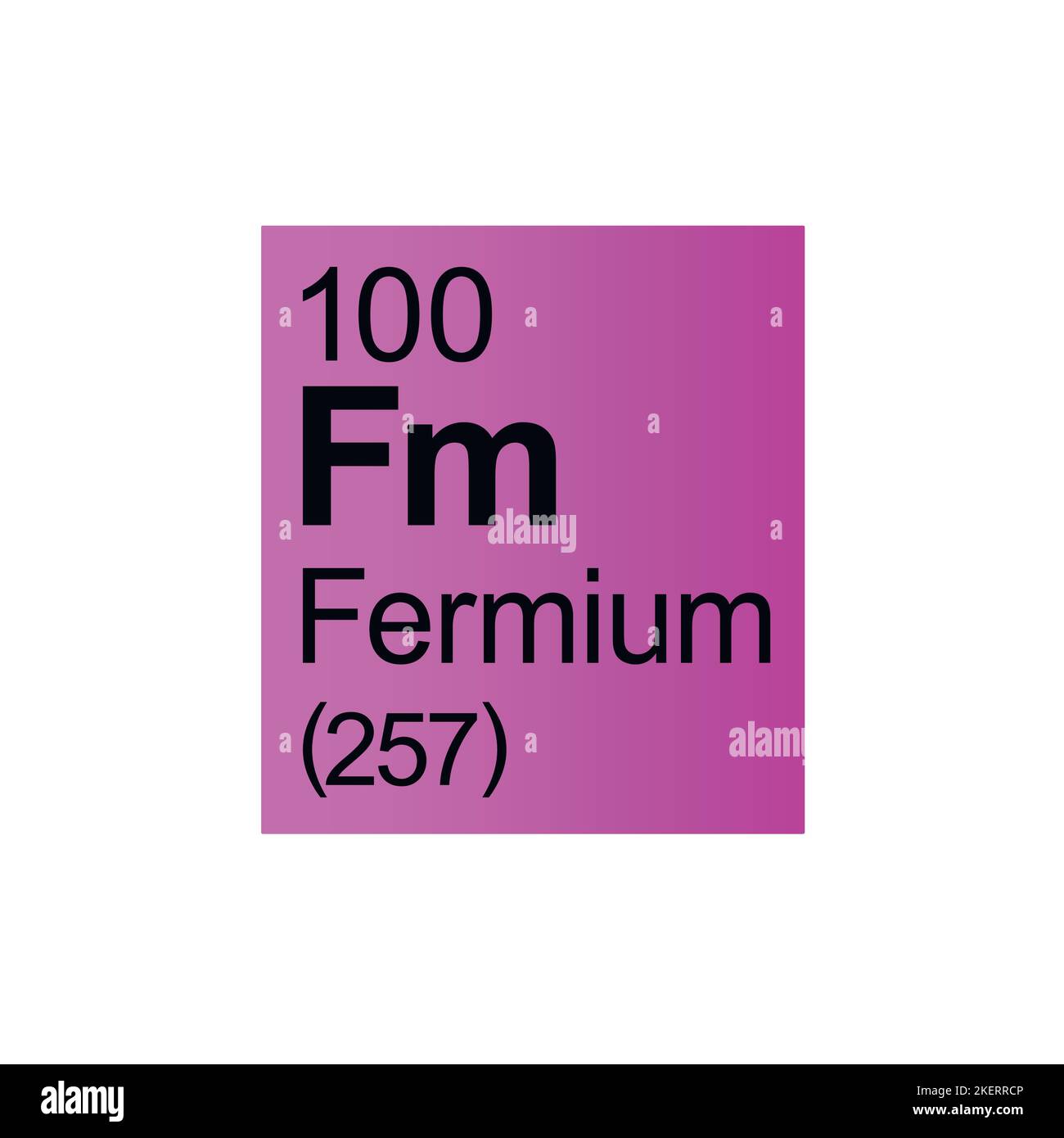 Fermium, FM, élément de table périodique avec nom, symbole, numéro atomique et poids. Élément radioactif synthétique ayant des utilisations potentielles dans la recherche scientifique et l'énergie nucléaire Image Vectorielle Stock - Alamy
