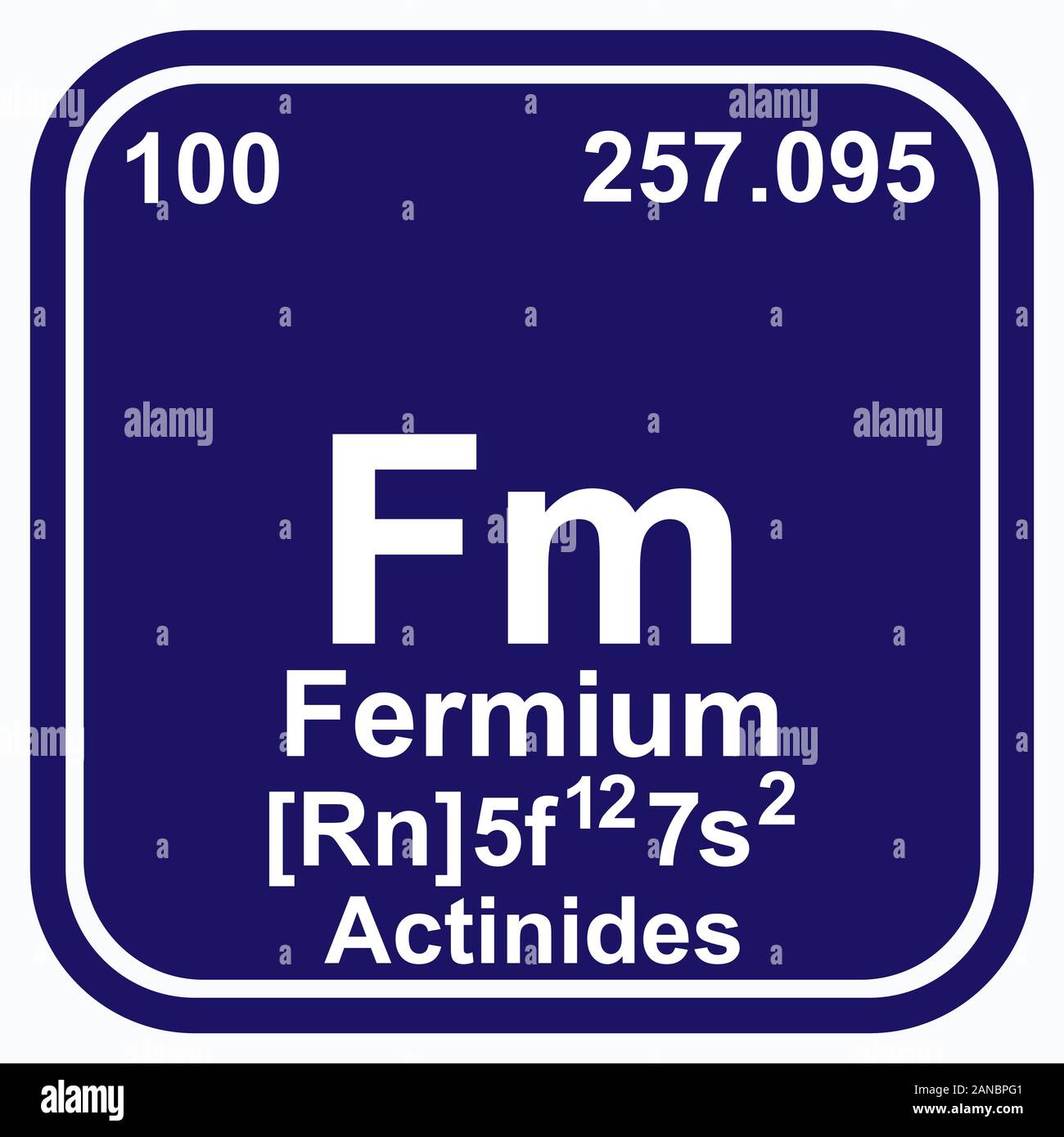 Symbole Fermium. Élément numéro 100 du tableau périodique des éléments - Chimie - cadre carré noir avec fond blanc Image Vectorielle Stock - Alamy