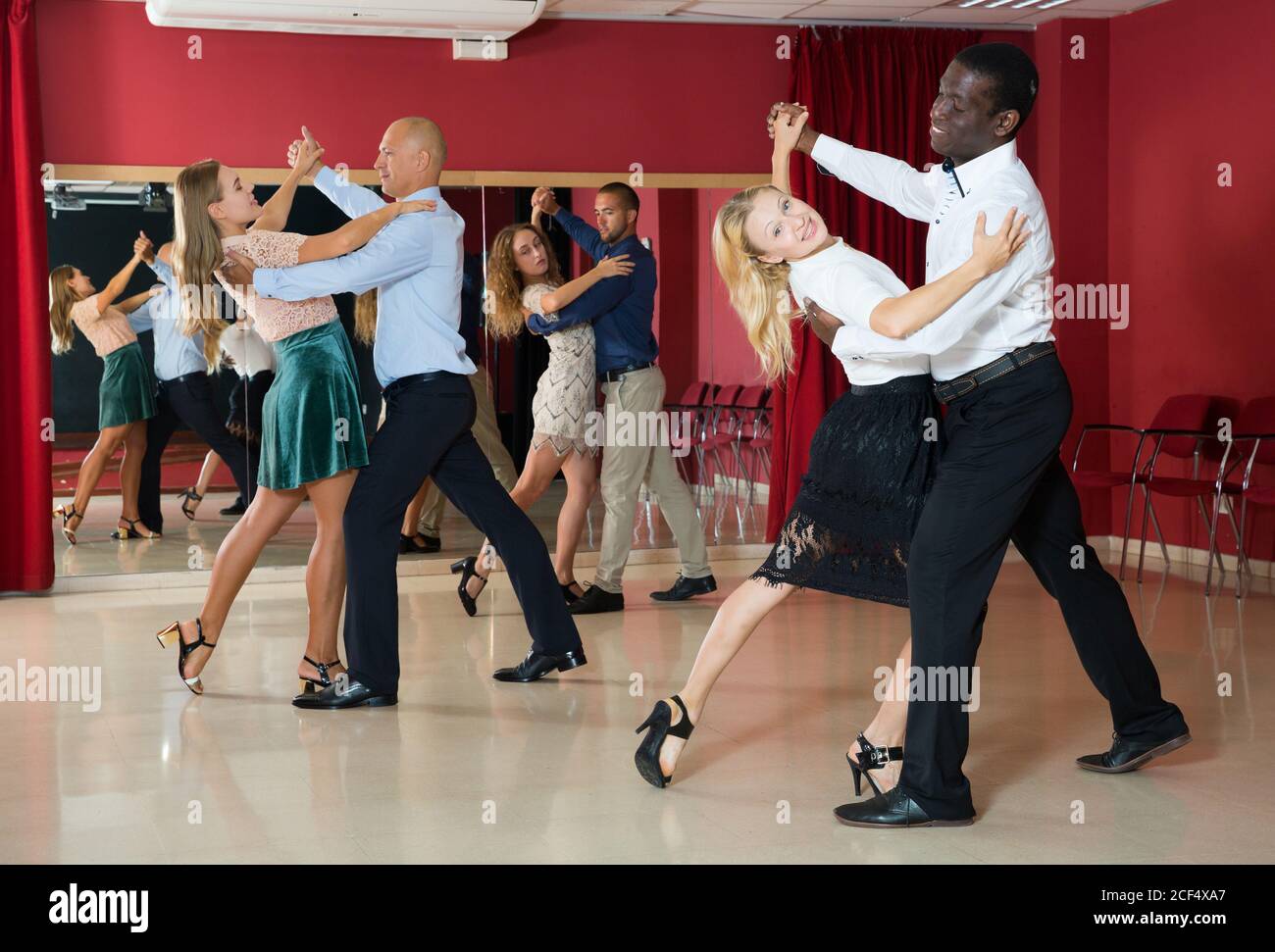 Young smiling people apprendre à danser valse en classe de danse Photo Stock - Alamy