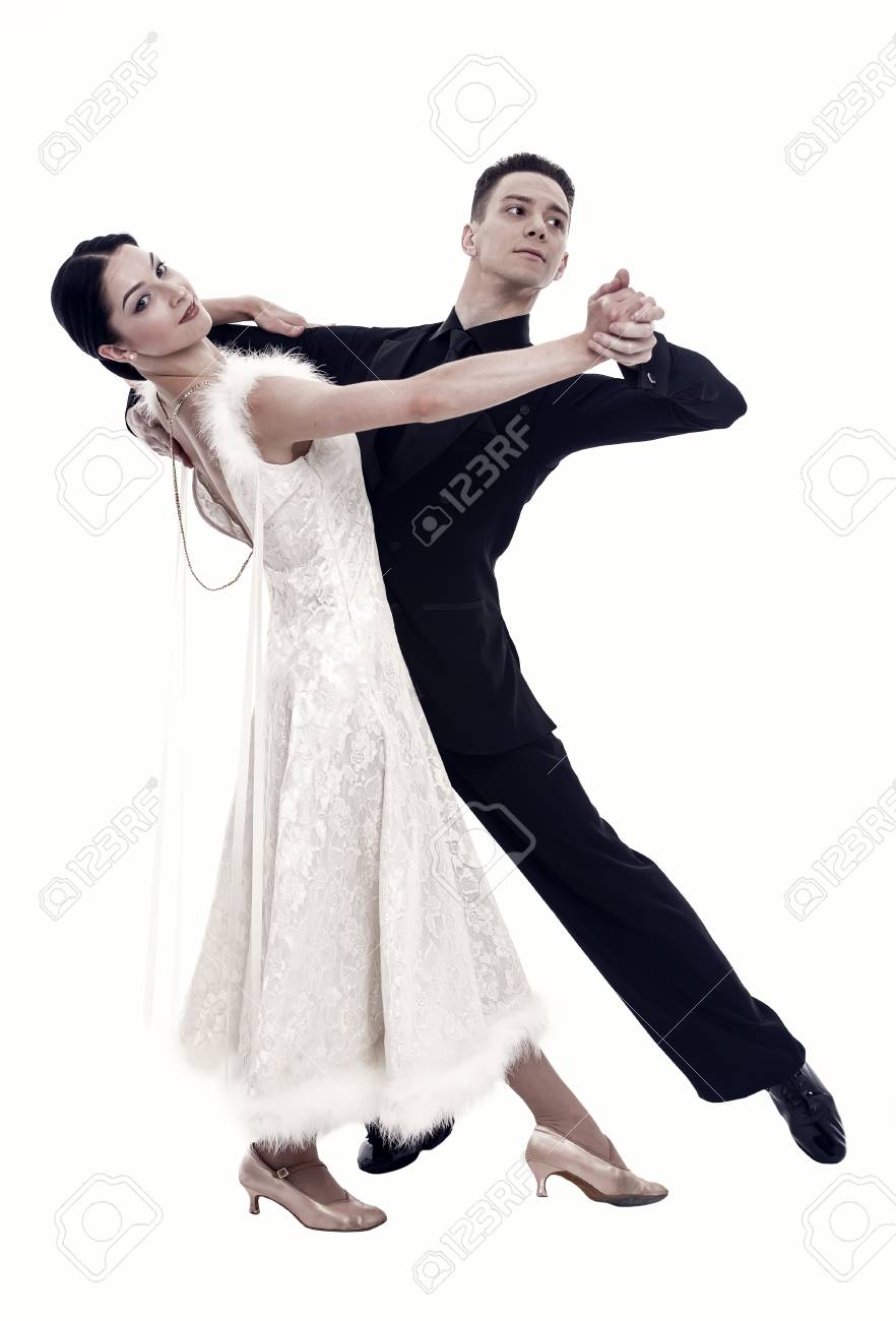 Couple De Danse De Salon Dans Une Pose De Danse Isolé Sur Fond Blanc Danseurs Professionnels Sensuels De Salle De Bal Dansant Valse Tango Slowfox Et Quickstep Just Dance Couple Balrrom En