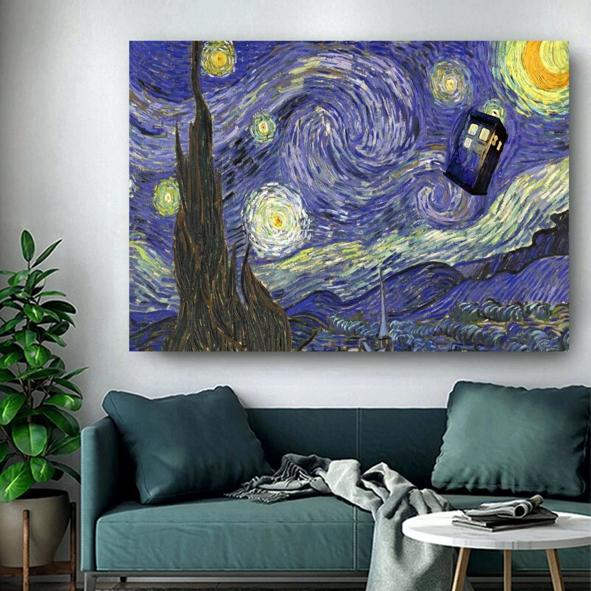 Amazon.com: Uhomate Tardis Dr Who Doctor Telephone Booth Wall Decor Vincent Van Gogh Starry Night Posters Home Canvas Wall Art Print Nursery Decor Living Room Wall Decor A099 (8X10): Posters & Prints