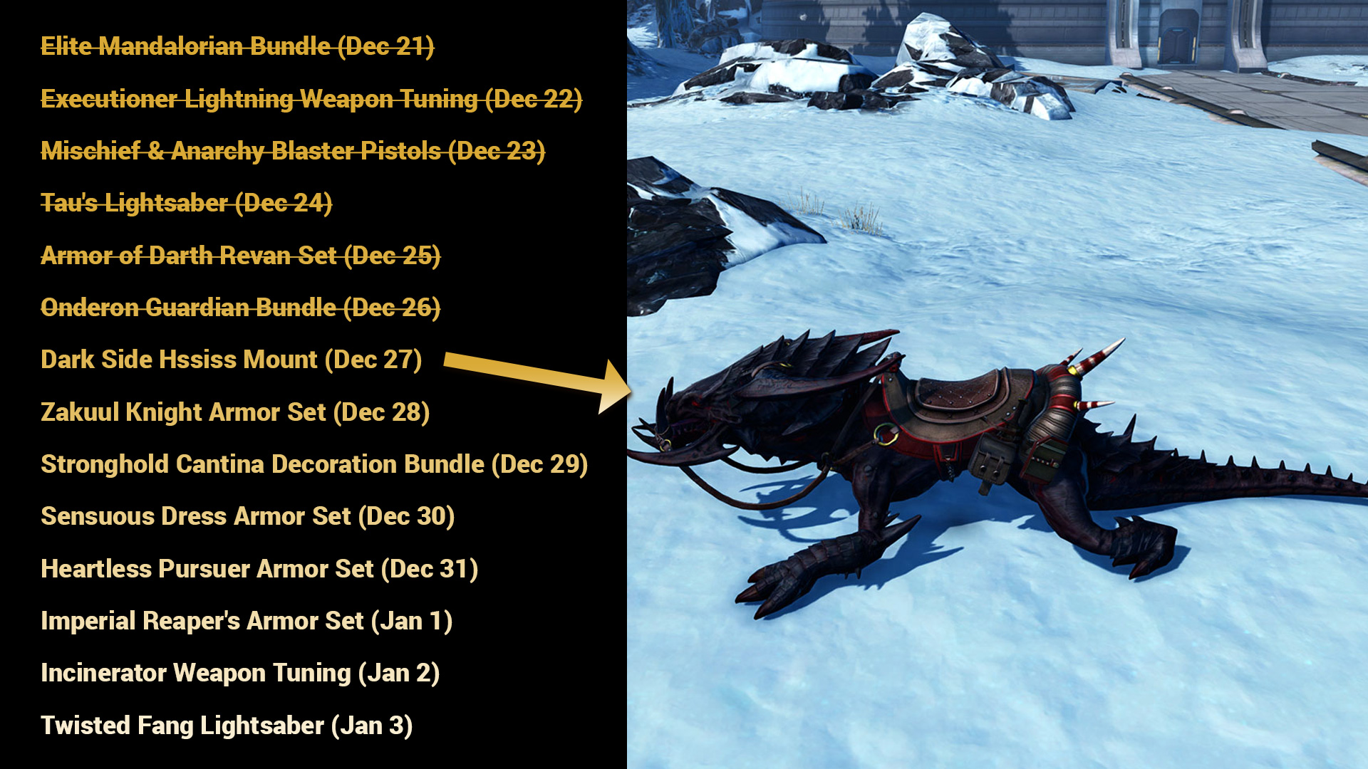 Swtorista on X: "Sale-of-the-Day for #SWTOR's Anniversary: 🟡 Dark Side Hssiss Mount (Dec 27) I don't understand why yall like this mount so much but you do LOL. It's like an evil,