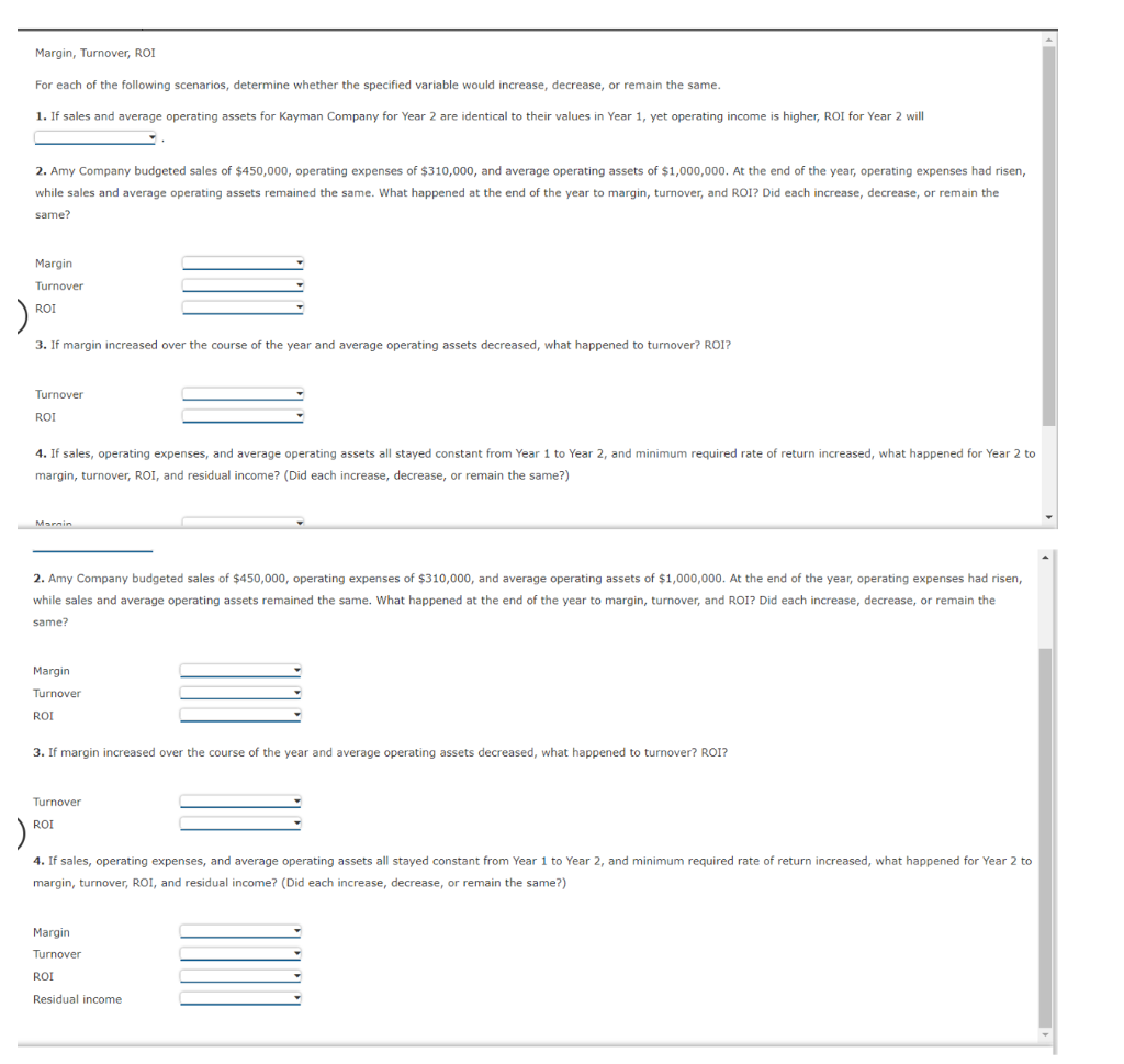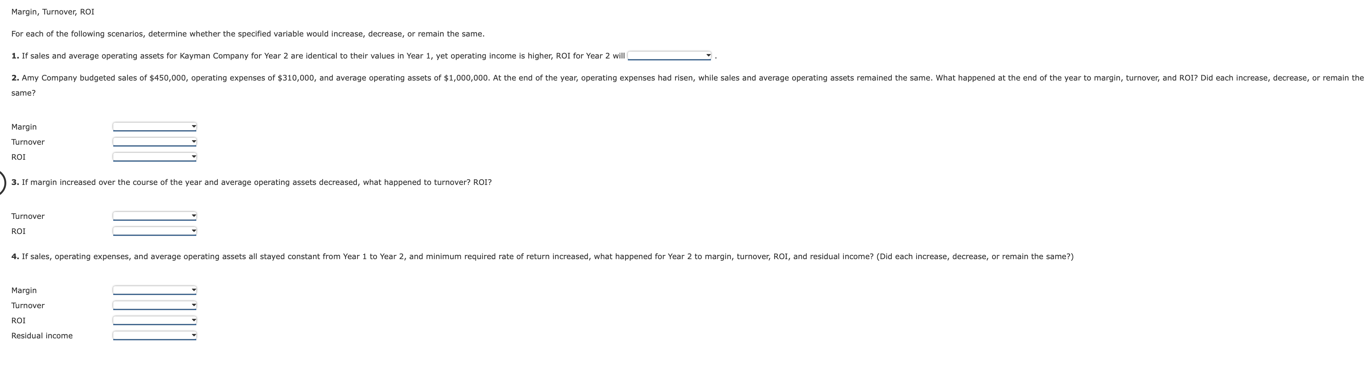 Solved Margin, Turnover, ROI For each of the following | Chegg.com