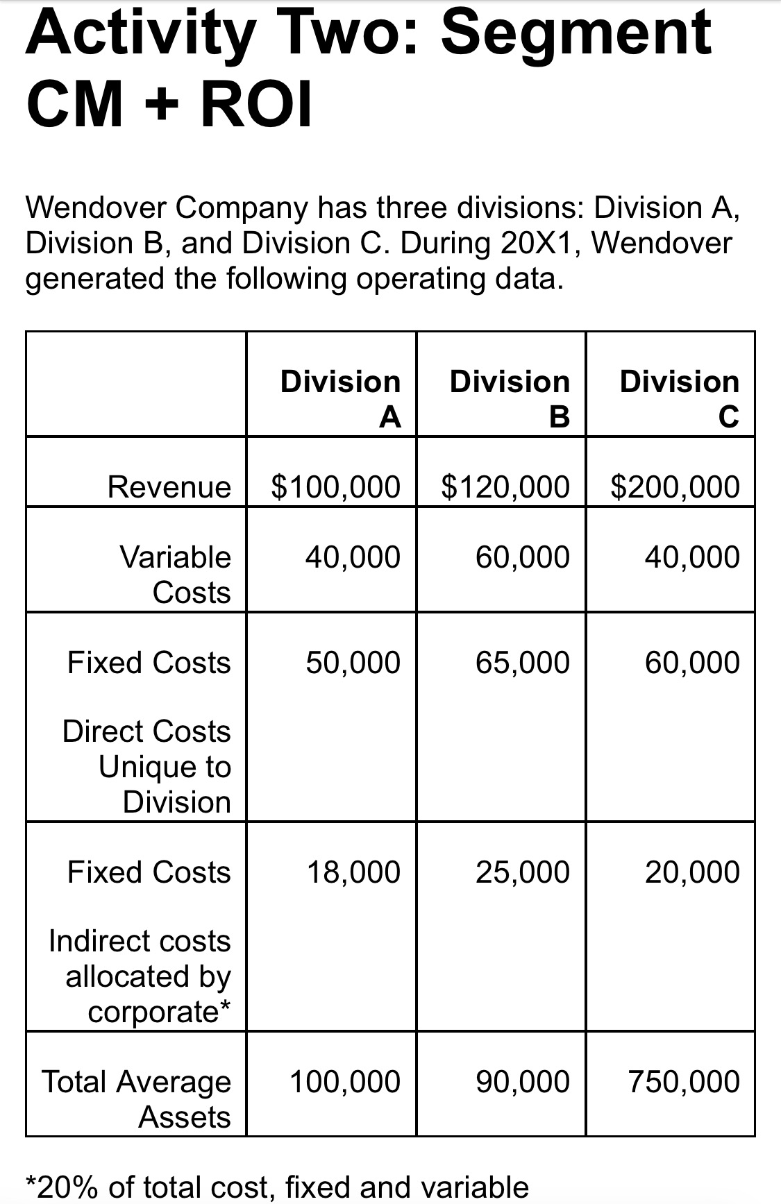 Solved Activity Two: Segment CM + ROI Wendover Company has | Chegg.com