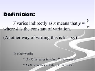 Direct and indirect variation | PPT