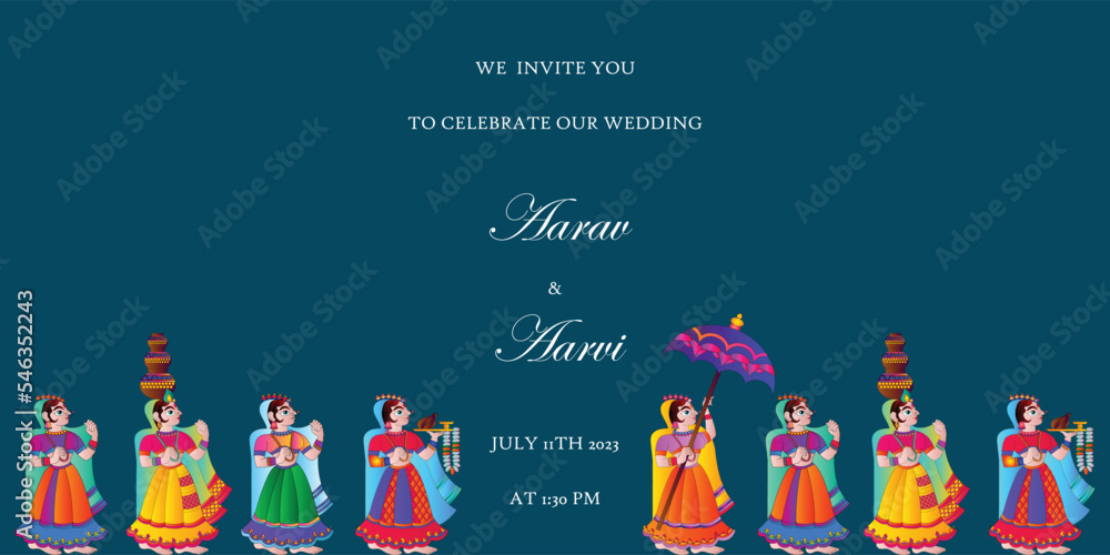 Vector illustration of an Indian wedding invitation card, 'Baraat ...