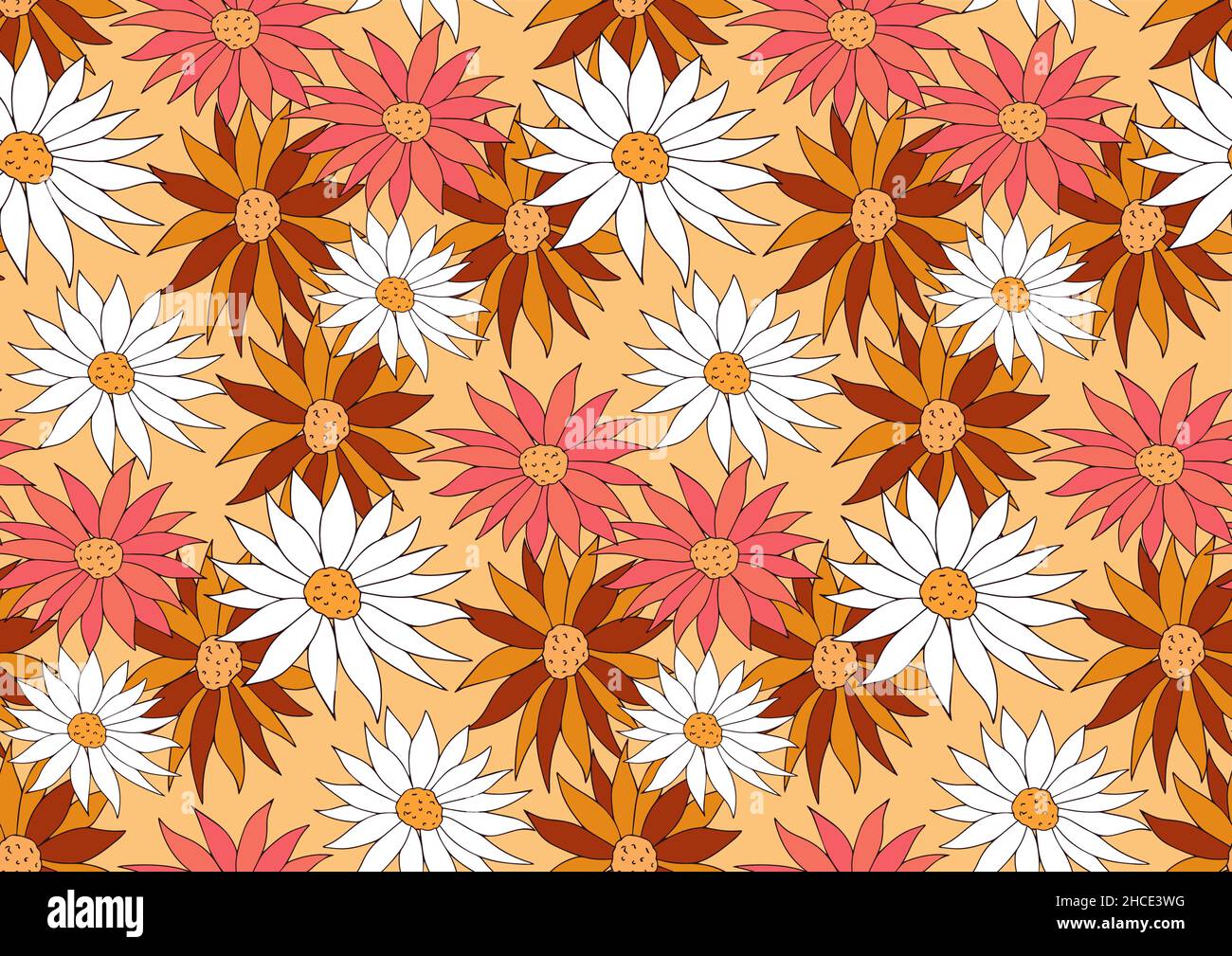 Motif fleurs rétro sans coutures 70s.Fleur hippie puissance répéter la texture, l'arrière-plan.Illustration vectorielle Image Vectorielle Stock - Alamy