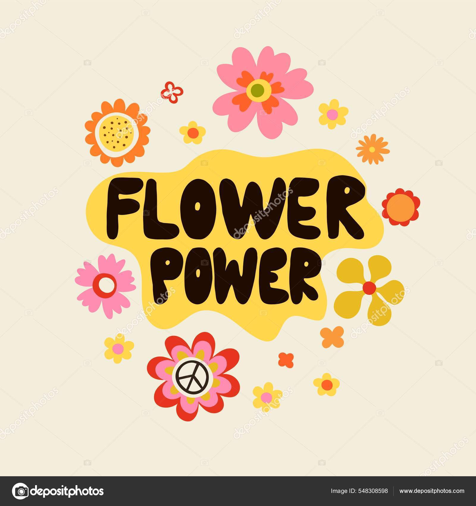 Fleurs Colorées Power Lettrage Avec Fleur De Marguerite Des Années 60 Hippie Illustration de Vecteur - Illustration du conception, lettrage: 163468128