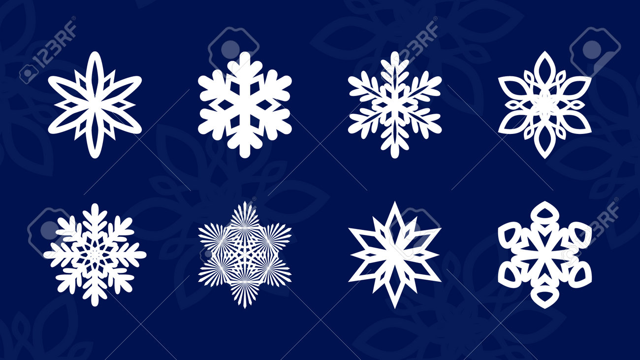 Collection De Flocons De Neige Vecteur Isolé Sur Blanc. Couleur Bleu Foncé. Clip Art Libres De Droits, Svg, Vecteurs Et Illustration. Image 44817258