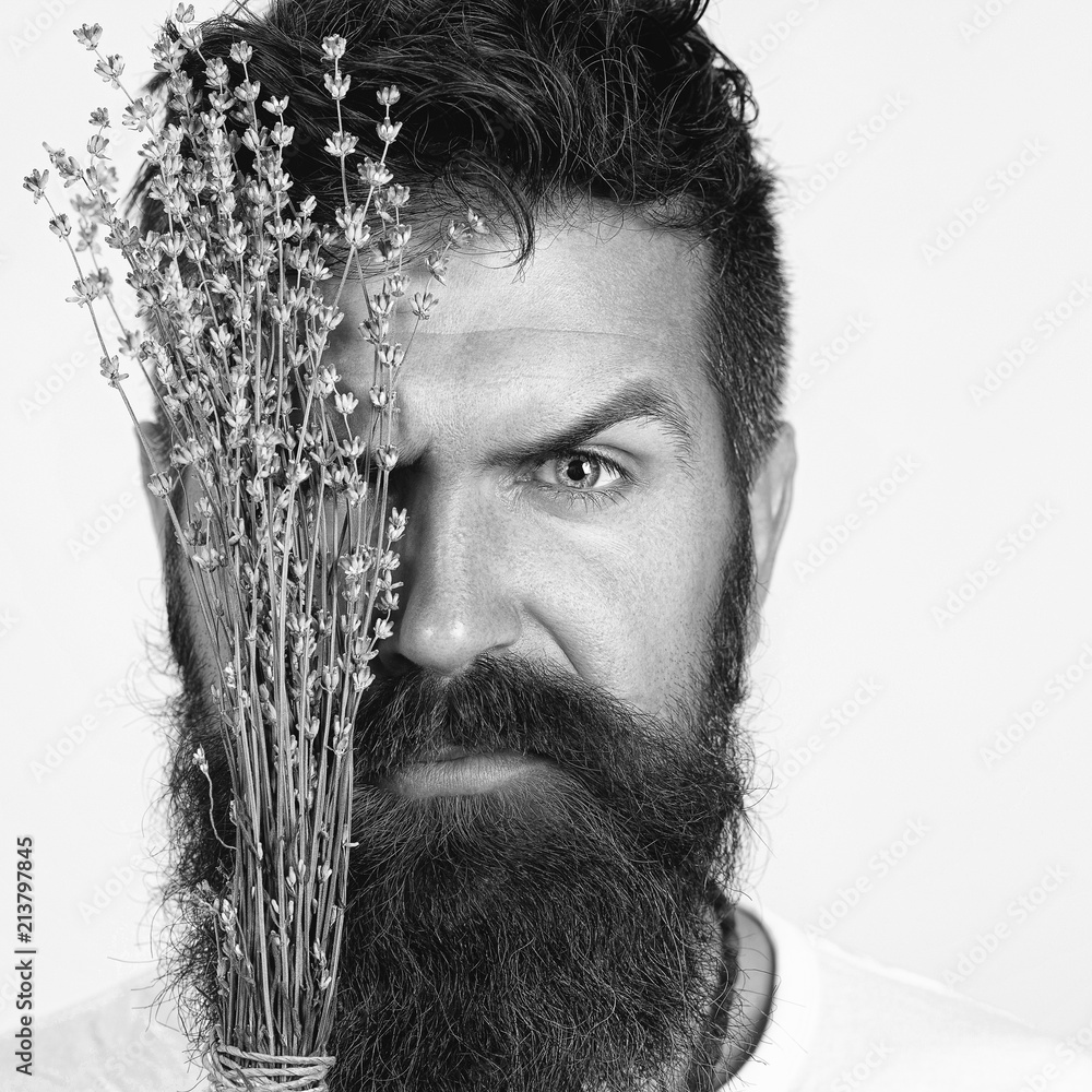 Young handsome bearded man with long beard moustache and brunette ...
