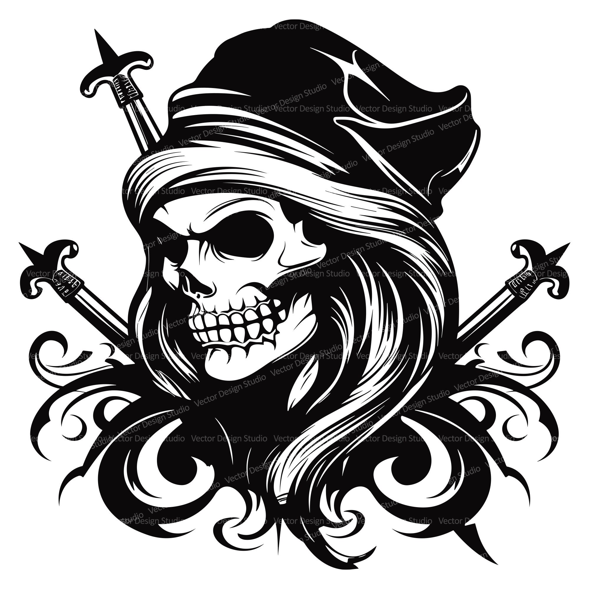 Pirate Skull of Girl Svg & PNG File Graphic, Woman Pirate Vector Clipart, Illustration SVG for T Shirt Design, Transparent Background Print - Etsy