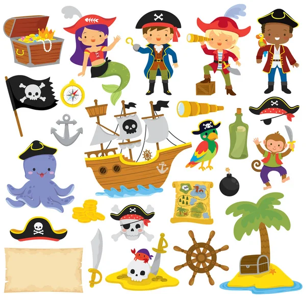 Paquet de pirates. collection d'objets pirates 3805372 Art vectoriel chez Vecteezy