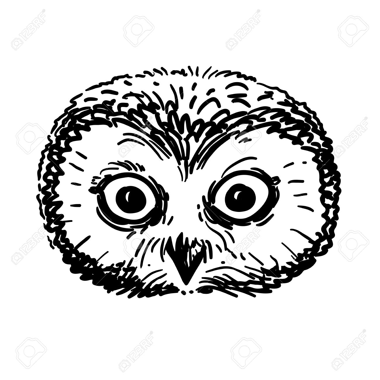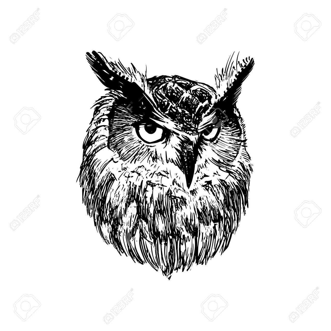 Tête De Hibou. Dessin À L'encre Graphique Pour L'impression, Style ...