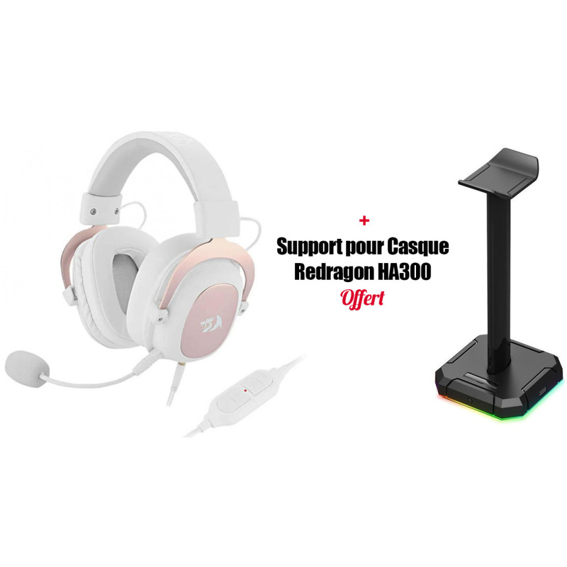 Casque Gaming Redragon ZEUS H510 / Blanc + Support pour Casque Redragon HA300 Offert