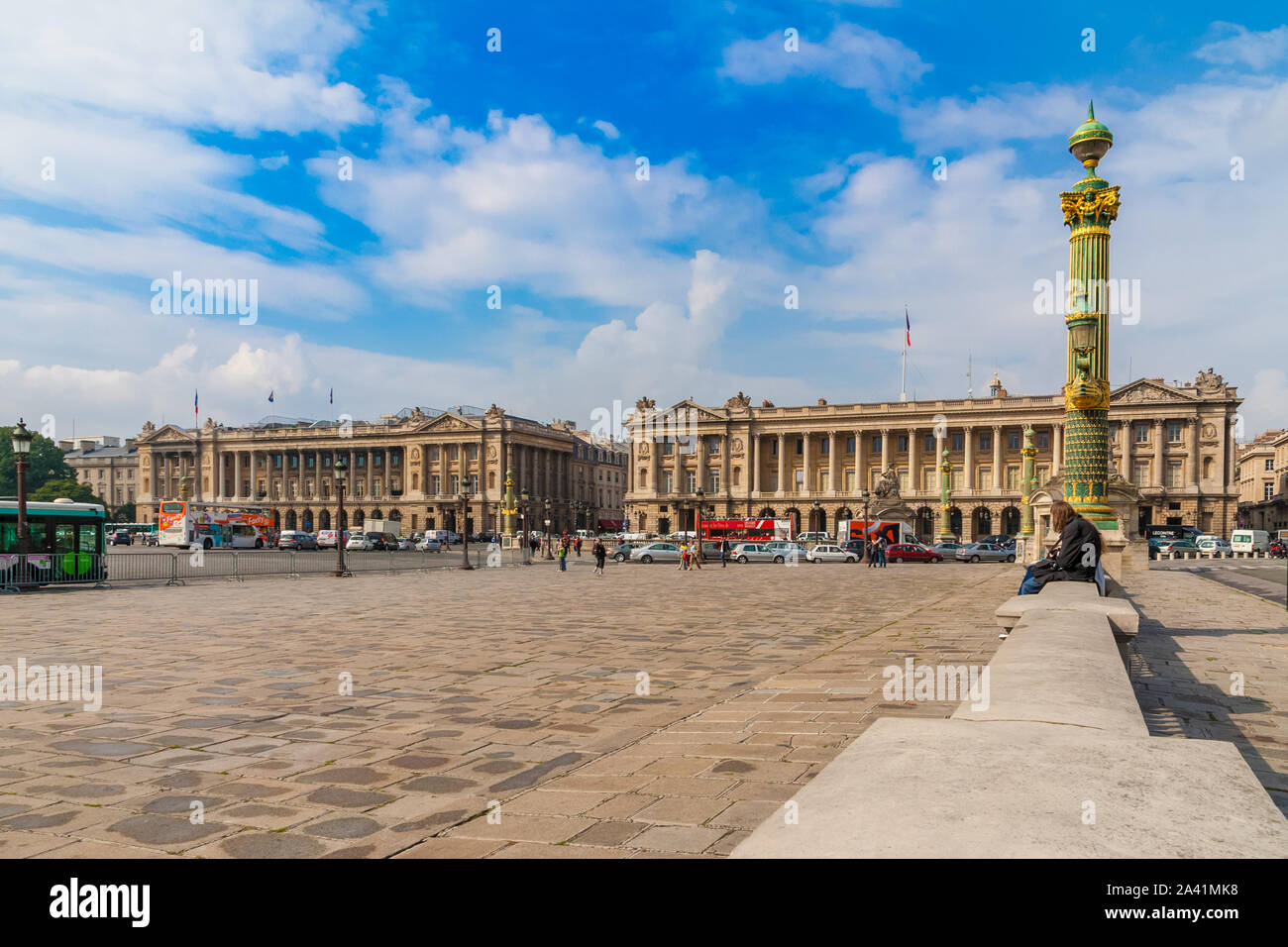 Nice panoramic view of the famous public square Place de la Concorde in Paris with the two identical stone palaces and the Rue Royal in the background Stock Photo - Alamy