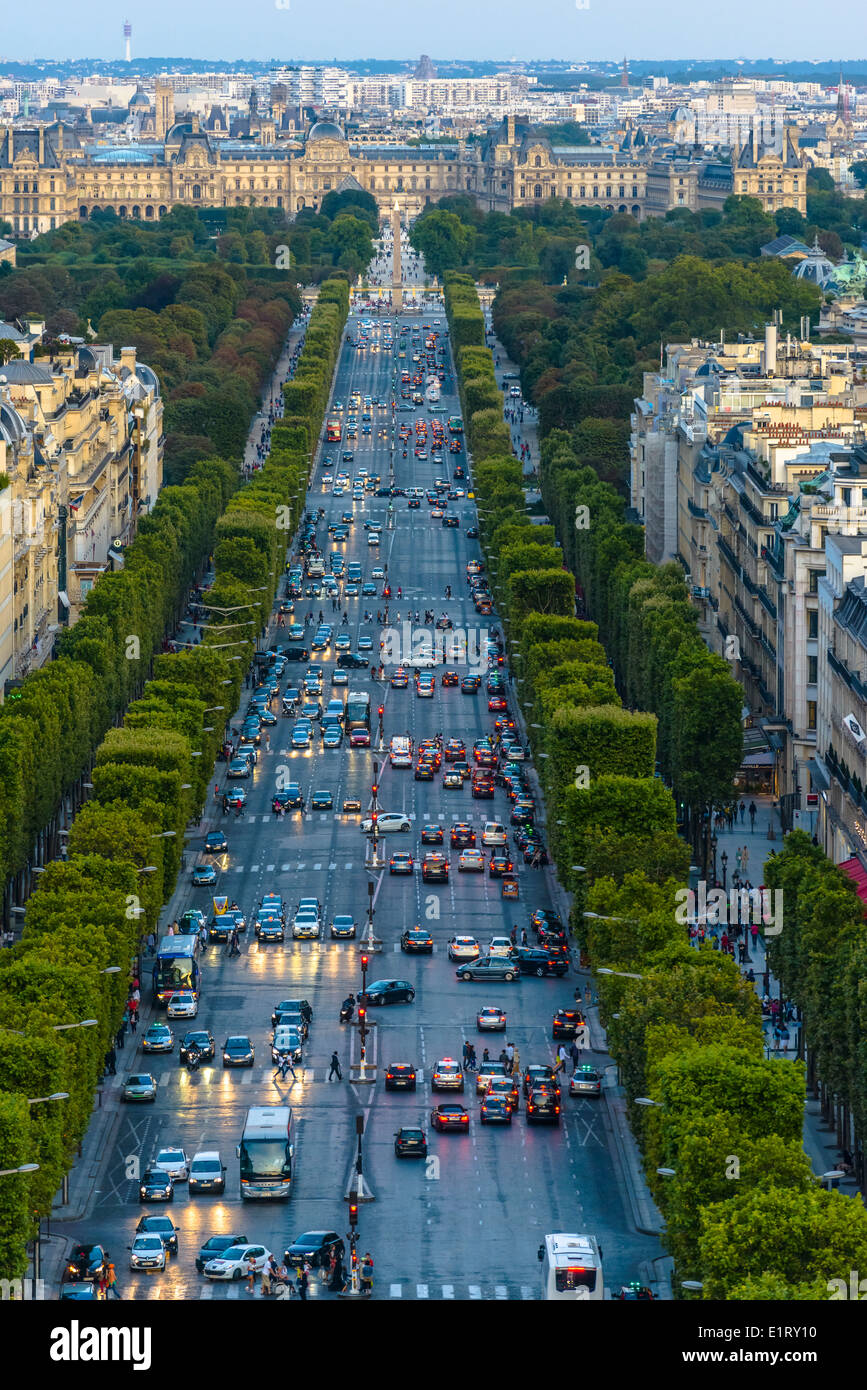 Champs-Elysees and Concorde Place as seen from the Arc de Triomphe in Paris, France Stock Photo - Alamy