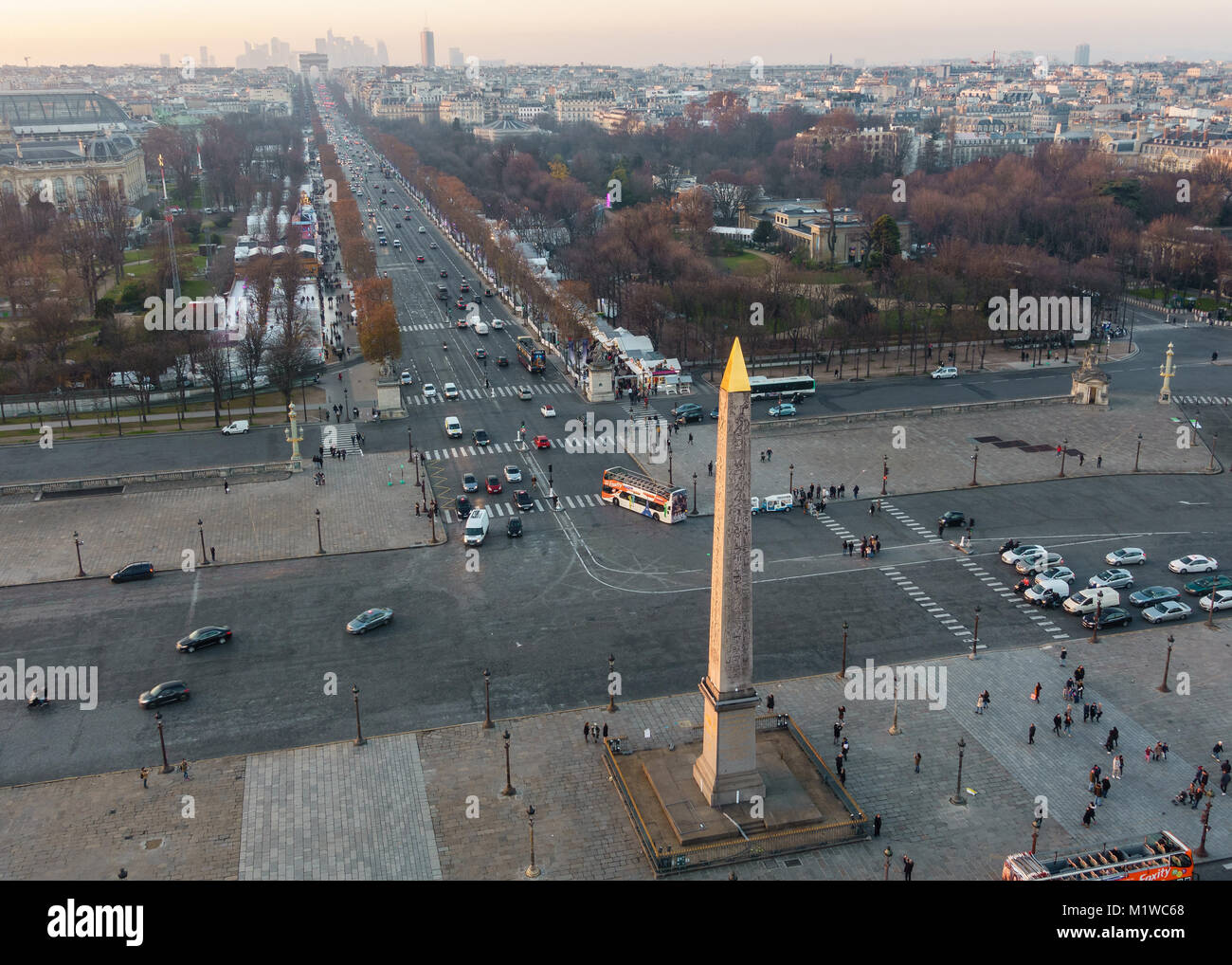 Place de la Concorde and the Champs-Elysees aerial view from the ferris wheel at sunset in Paris, France Stock Photo - Alamy